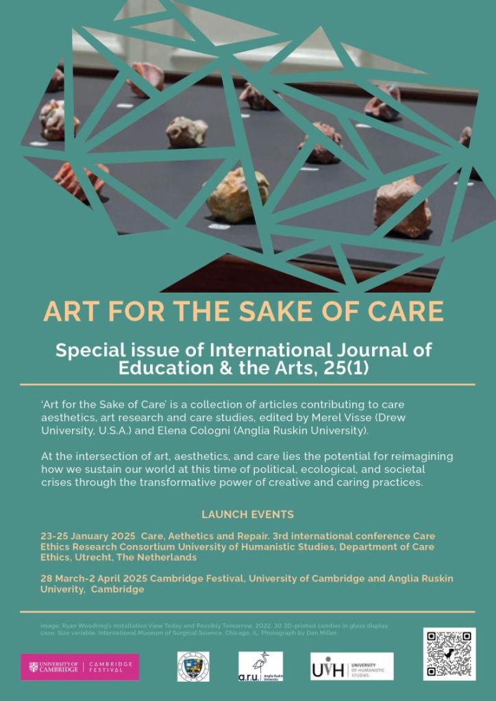LATEST: Our special issue Art for the Sake of Care is available for download at the International Journal of Education and the Arts. Discover the innovative and transformative work of more than 30 artists-academics on care. Together, they showcase creativity and making as powerful forces driving meaningful change. The issue is the culmination of five years of collaboration in the Art & Care Platform Series. ✨ ✨ Click here to read and download the Full issue (Open Access) published by the International Journal of Education and the Arts.